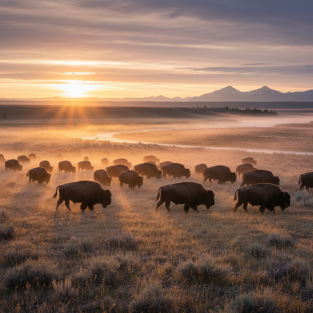 Bison, wolves, grizzly bears, bighorn sheep, elk.
